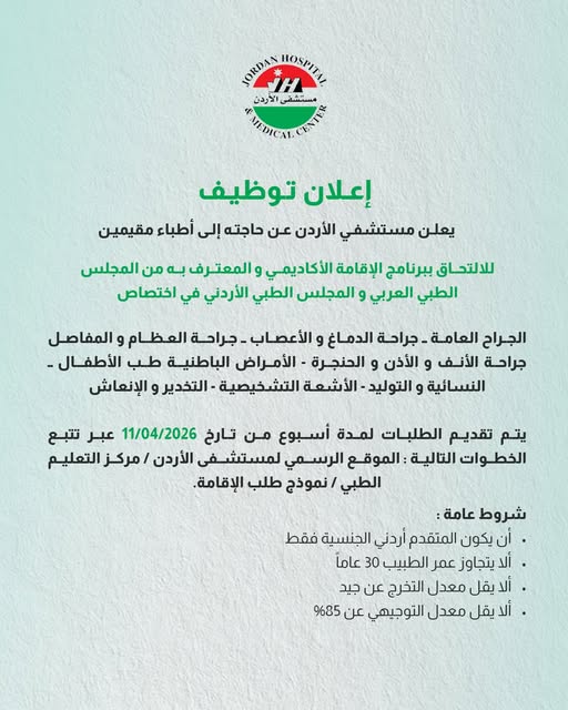 إعلان توظيف في مستشفى الأردن