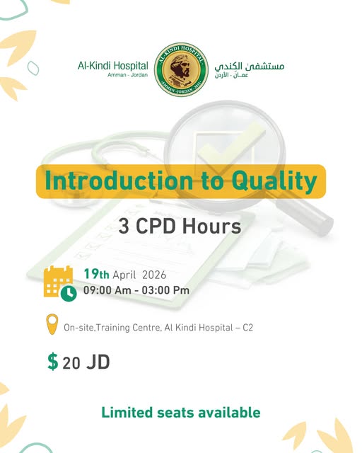 مستشفى الكندي يعلن عن إقامة دورة Introduction to Quality