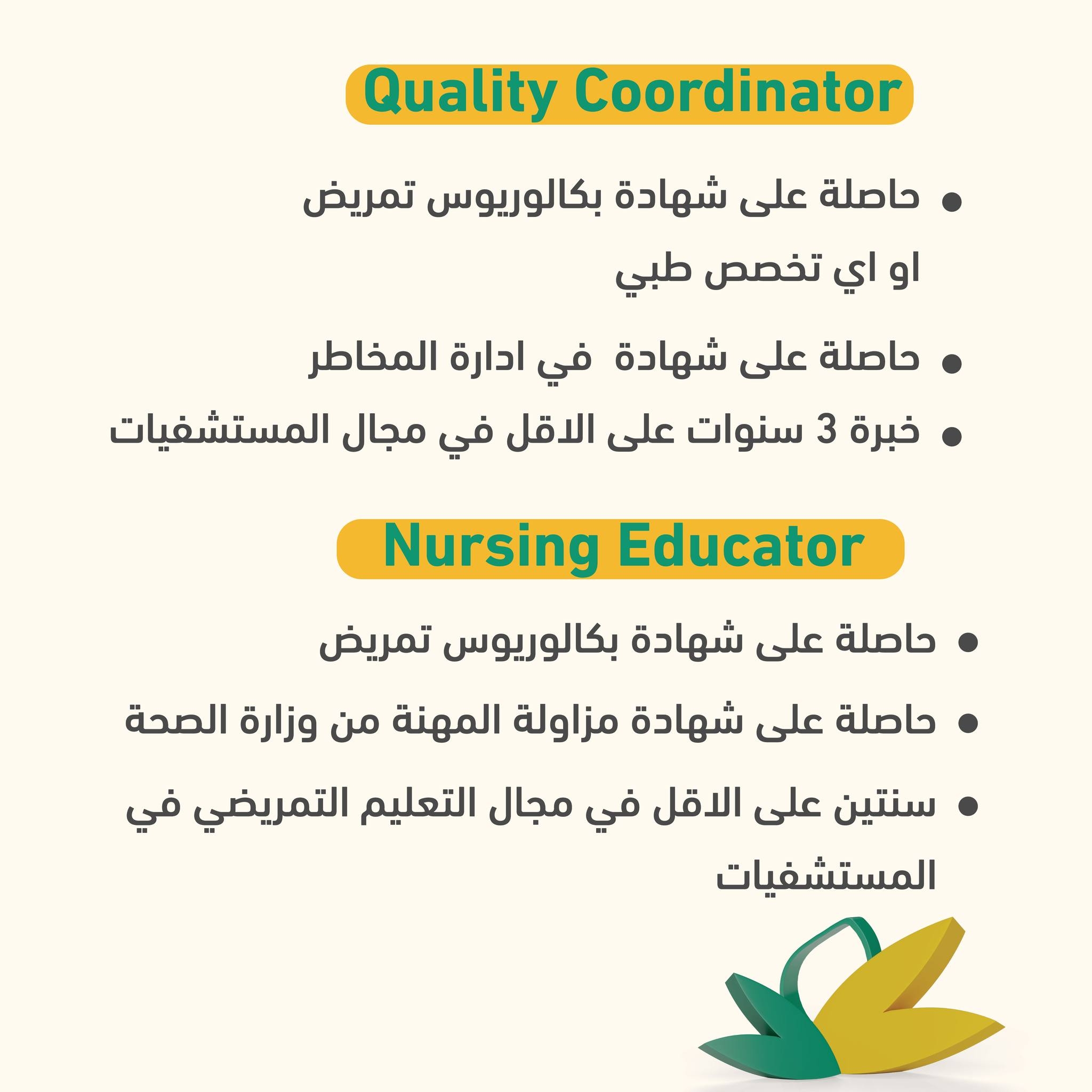 * خبرة سنتين على الاقل في مجال التعليم التمريضي في المستشفيات.