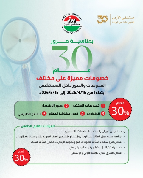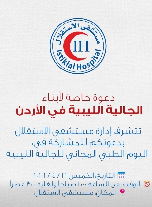 يعلن المستشفى الاستشاري عن بدء استقبال الطلبات للالتحاق ببرامج الإقامة المعتمدة من المجلس الطبي الأردني و العربي لعام 2026-2027 مستوى السنة الأولى في التخصصات التالية: