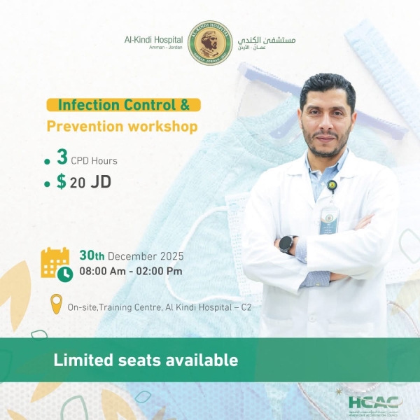 يقدّم مستشفى الكندي ورشة متخصصة في مكافحة العدوى والوقاية منها