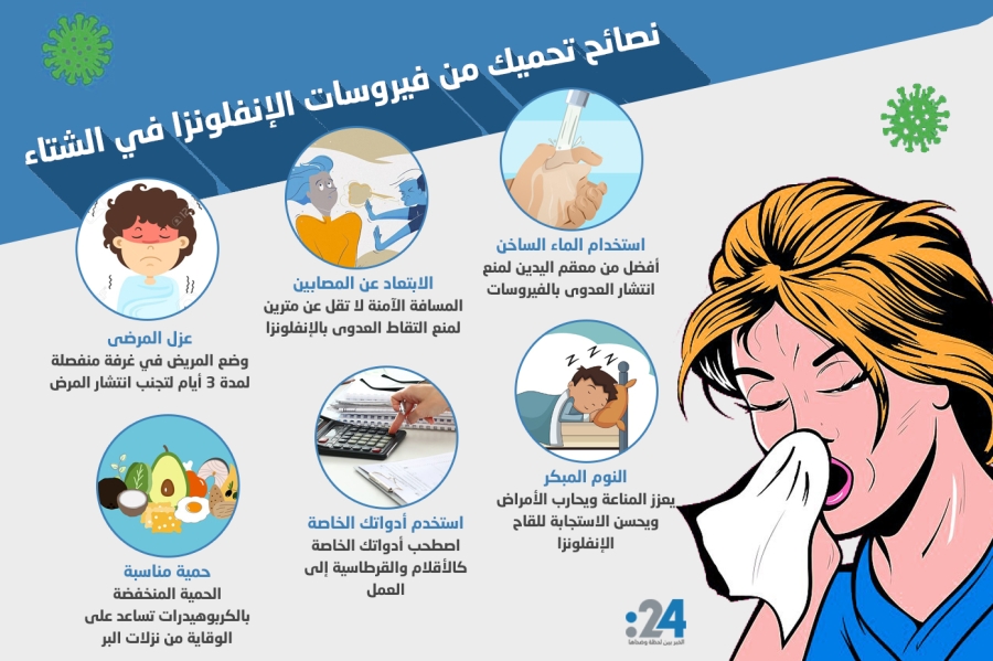الأطباء يحذرون من 7 فيروسات تنفسية تنتشر فى فصل الشتاء.. أبرزها الأنفلونزا والمخلوى والفيروس الغدى.. أعراضها متشابهة تشمل العطس والسعال والتهاب الحلق..