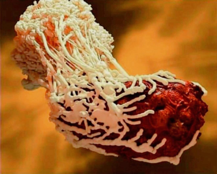 صورة لكريات دم بيضاء وهي تهاجم جرثومة دفاعاً عن الجسم ..